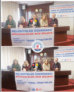 Açıklamada, siyasi iktidarın yerel yönetimleri “demokrasiden ve halktan kopartıp merkezin birer taşra birimine dönüştürme yönünde adım attığı” belirtilerek bunun kayyımlarla veya görevden almalarla sınırlı olmadığı kaydedildi: “Son yerel seçimlerden hemen önce yerel yönetimlerin ülke idari yapısındaki yeri değiştirilerek bütçeleri kamudaki tek hesap sistemine dâhil edilmiş, yani belediyelerin Anayasal güvencede olan özerk bütçe haklarına darbe vurulmuştur. Yine ‘tasarruf’ tedbirleri adına belediyelerin merkezi ödeneklerinden kesintiler yapılmış, belediyelerin hemen her türlü ciddi yatırım projelerinin onayı merkezi hükümete verilmiştir.”