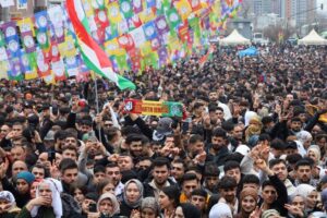 Batman Newroz’unda binlerce kişi, Pazaryeri Mahallesi’nde bulunan Newroz Alanı’na gitti. Yağışlı havaya aldırış etmeyen yurttaşlar, uzun bir süre Newroz halayına durdu.