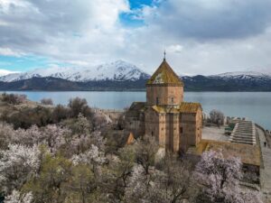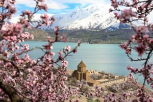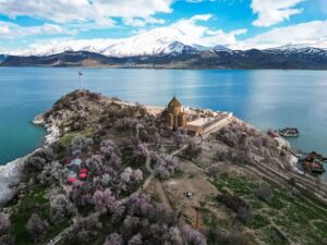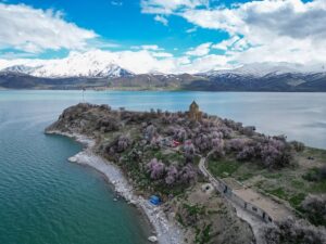 Yılın her döneminde farklı manzarasıyla insanları cezbeden Akdamar (Ahtamar) Adası, bugünlerde de Van Gölü’nün ve gökyüzünün maviliği ve çiçek açan badem ağaçlarıyla ziyaretçilerini ağırlıyor.