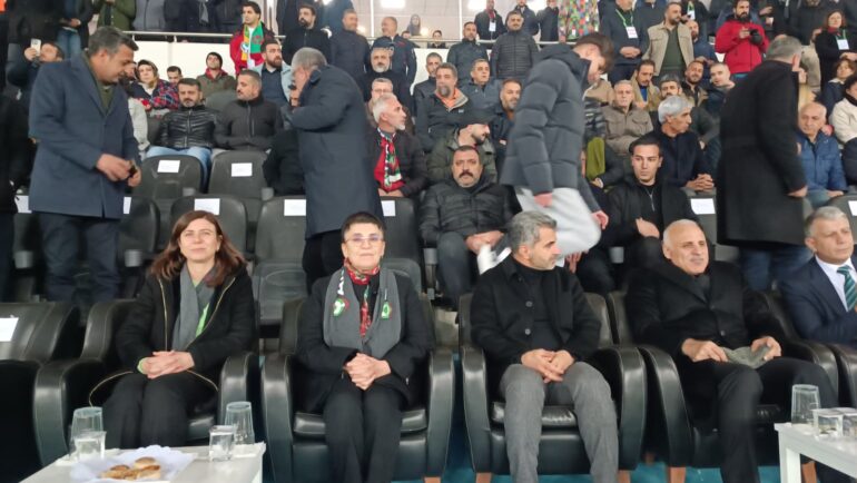 Leyla Zana, maçın başlamasına dakikalar kala tribünlerdeki yerini alırken, taraftarların coşkulu karşılamasıyla karşılandı.