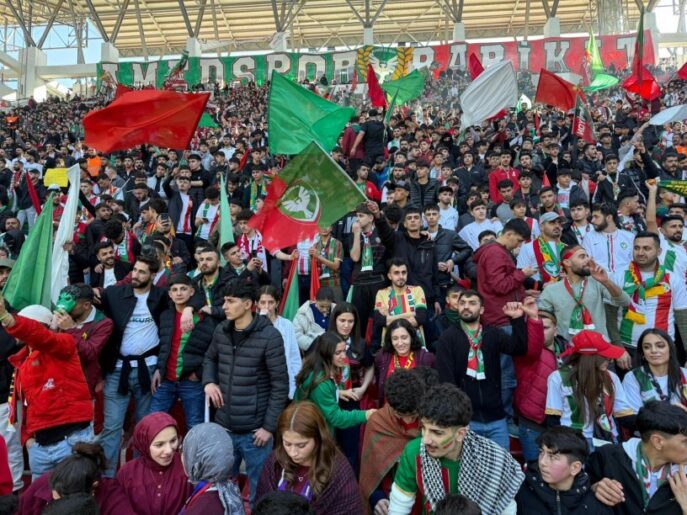 Maç saatler kala Amedspor taraftarları Tahir Elçi Stadyumu’nu doldurdu. İzmir, İstanbul, Iğdır, Ağrı, Van ve Şanlıurfa başta olmak üzere birçok kentten gelen 30 bini aşkın taraftar tribünlerde yerini aldı.