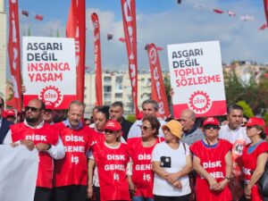 “Türkiye en çok asgari ücreti konuşuyor. Dünyanın hiçbir yerinde asgari ücret bu kadar konuşulmazken Türkiye’de neden bu kadar gündemde? Çünkü Türkiye’yi bir asgari ücretliler ülkesi haline getirdiler. Hepimizi asgaride, hepimizi yoksullukta eşitleyen bir politika izliyorlar. Bu ülkede asgari ücretin belirlenme süreci, devletin toplumla yaptığı en büyük toplu sözleşme sürecidir. Bir masanın etrafında 15 kişi toplanıp milyonların hayatı hakkında karar veremez. Türkiye’nin en büyük toplu sözleşme süreci gerçek bir toplu pazarlıkla yapılmalıdır. Asgari ücret, uyuşmazlık durumunda grev hakkımızın da olduğu bütün konfederasyonların masada olduğu gerçek bir toplu pazarlıkla belirlenmelidir. Ve asgari ücret bir işçinin ailesiyle birlikte geçinebileceği bir ücret olarak belirlenmelidir. Hala Türkiye’de asgari ücreti tek bir işçi üzerinden belirliyorlar.