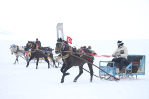 Çıldır Gölü’nün simgesi haline gelen atlı kızakların yarıştığı etkinlikte, önce buz hokeyi takımı daha sonra buz üzerinde sahne alan senkronize buz pateni takımı ile artistik buz pateni sporcuları gösterilerini sundu.