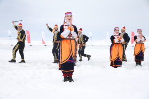 Arpaçay ilçesi Kütük Ev mevkisinde düzenlenen “Çıldır Gölü Buz Şenliği” etkinliği, Kafkas Halk Oyunları ve Mahalli Halk Oyunları ekibinin gösterisiyle başladı.