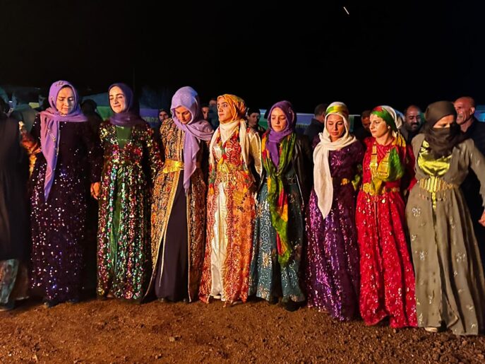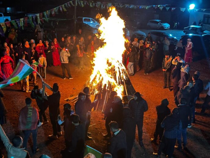 Kadınların öncülüğünde yakılan Newroz ateşi etrafında halaylar çekildi. Kutlamalar, köy meydanında renkli ve coşkulu anlara sahne oldu.
