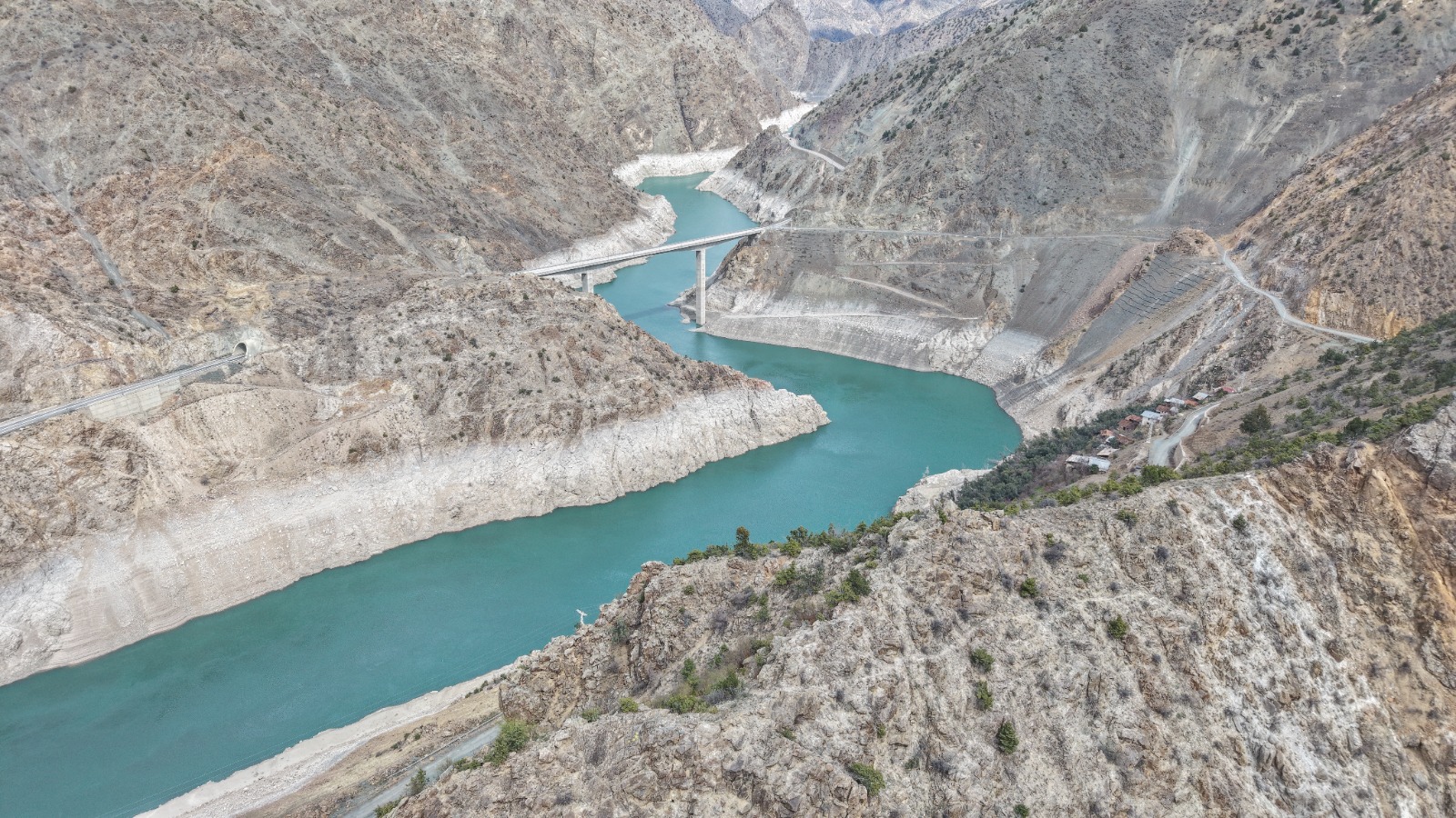 Enerji üretimi amacıyla inşa edilen ve 1 milyar 969 milyon metreküp su depolama hacmine sahip Deriner Barajı’ndaki su seviyesi, mevsimsel yağışların azlığı nedeniyle düşüş gösterdi.