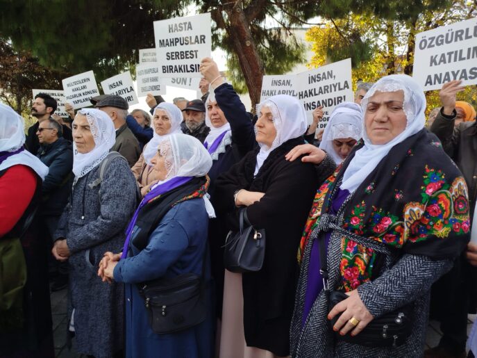 Ardından söz alan Barış Anneleri de taleplerini dillendirerek “Abdullah Öcalan’ın fiziki özgürlüğünü istiyoruz” dedi.