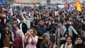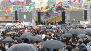 Mardin’in Midyat ilçesinde Newroz kutlandı. Ancak her geçen dakika yağışın etkisinin yoğunlaşması üzerine Tertip Komitesi, Newroz kutlamasının ertelenmesi yönünde karar aldı. DEM Parti İl Eşbaşkanı Nilüfer Elik Yılmaz, sahne alarak Midyat ilçesinde Newroz kutlamasını ileri bir tarihe ertelediklerini duyurdu.