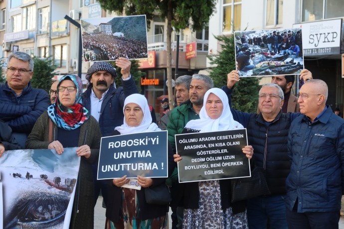 İnsanlığa karşı işlenen suçlarda zaman aşımı olmayacağını hatırlatan Erdem, “Roboskî Katliamı’nın sorumlularının gün yüzüne çıkarılmasına, katliamın tüm yönleri ile aydınlatılmasına yönelik mücadelemiz devam edecektir. Katiller ve bu katliam kararını verenler, katilleri koruyanlar, bu katliamı gizlemek için çaba sarf edenler elbet ortaya çıkacaktır” ifadelerini kullandı.