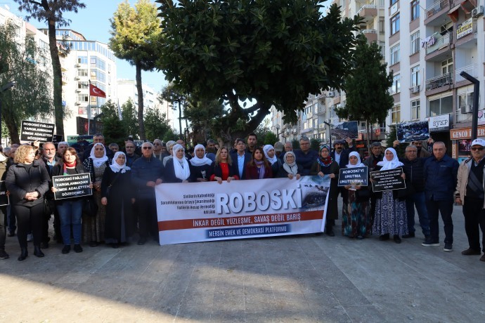 Mersin Emek ve Demokrasi Platformu, Özgür Çocuk Parkı’nda açıklama yaptı. “İnkar değil; yüzleşme, savaş değil; barış” pankartının açıldığı açıklamada, “Şehîd namirin” ve “Roboskî’yi unutma, unutturma” sloganları atıldı.