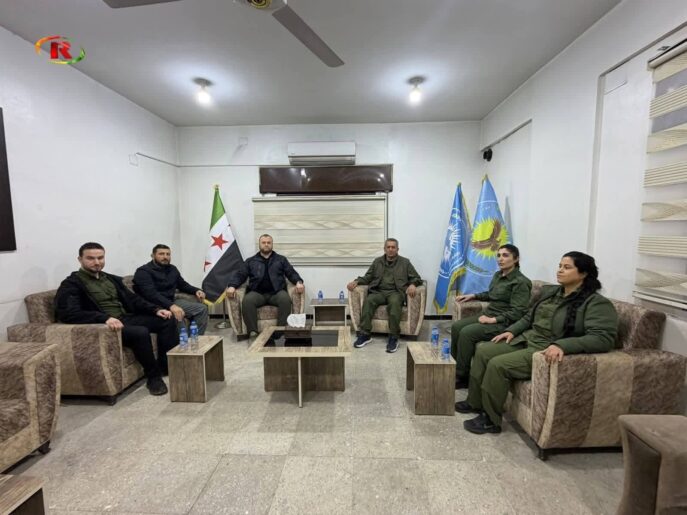 Karşılarında Kobani halkını temsil eden üç kişilik heyette iki kadın.