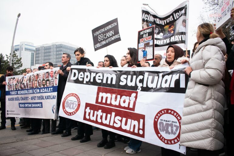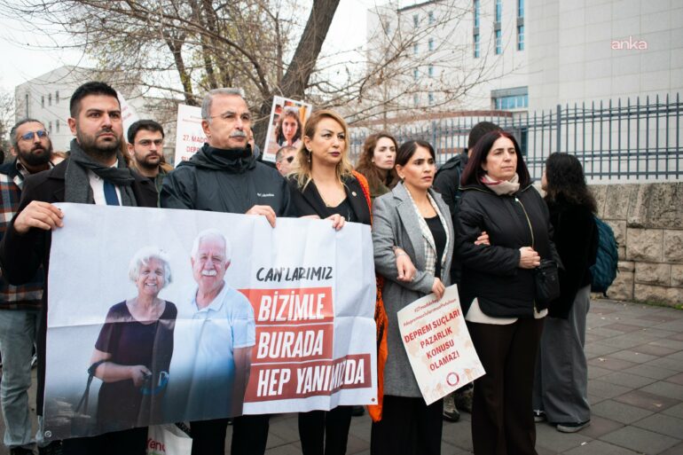 Ancak depremzedeler, 3 yıldır aynı zamanda sokaklarda verdikleri mücadeleyi adliye koridorlarında da vermelerine rağmen; deprem suçluları şimdiye kadar cezasızlıkla ödüllendirilirken, şimdi bu paketle beraber af niteliğinde bir düzenleme Meclis’ten geçirilmek isteniyor. Dolayısıyla çok yaralı, gerçekten enkaz içinde hisseden, elleri titreyerek, yüreği titreyerek bugün adalet peşinde olan aileler, ‘Deprem suçunun affı olmaz’ diyorlar.