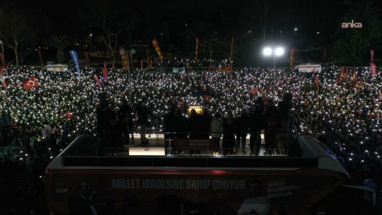 CHP, Ekrem İmamoğlu’nun tutuklanmasının yıldönümünde Saraçhane’de miting düzenlendi. İmamoğlu “Son sözü millet sandıkta söyler” derken, Özgür Özel “Partimizi iktidar, Ekrem Başkanı Cumhurbaşkanı yapacağız”, DİSK Başkanı Arzu Çerkezoğlu “Hak arama özgürlüğümüzü yok etmeye çalışıyorlar” ve üniversite öğrencileri ise “Barikatları tanımadık, yıktık” ifadeleriyle sürece tepki gösterdi.
