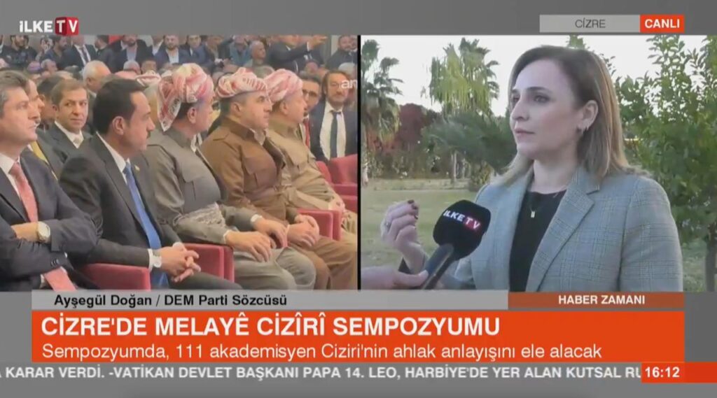 KDP Genel Başkanı Mesud Barzani’nin Cizre’deki 4. Uluslararası Melayê Cizîrî Sempozyumu’na katıldığı programda, DEM Partili Cizre Belediye Eşbaşkanlarının otelin konferans salonuna alınmadığı belirtildi. DEM Parti Sözcüsü Ayşegül Doğan, İlke TV’ye yaptığı açıklamada, “Bu doğrudan şiddet… Cizre Belediyesi’nin seçilmişlerini yok sayarak Melayê Cizîrî’yi anlayamazsınız” diyerek, engellemeye dair görüntülü kanıtlarının olduğunu söyledi.