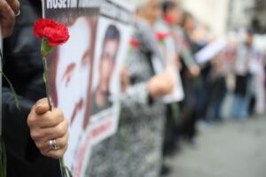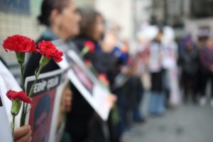 “1074’üncü haftamızda, hakikat ve adalet arayışımızın kalbi olan Galatasaray Meydanı’ndan, bizi ayıran polis bariyerlerinin önündeyiz. Bu bariyerler yalnızca bizi meydandan uzak tutmuyor; aynı zamanda toplanma özgürlüğümüzü ve kayıplarımızı arama hakkımızı da engelliyor.