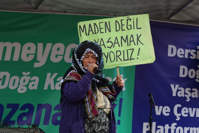 Mitingde konuşan DEM Parti Eş Genel Başkanı Tülay Hatimoğulları ise “Maden değil, yaşam istiyoruz, doğa düşmanlarına geçit yok” dedi.