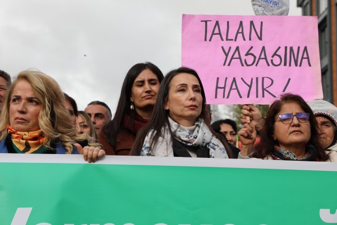 Birçok yerde gerçekleşen doğa talanını hatırlatan Tülay Hatimoğlulları, halkın bu talana karşı direnişte olduğuna dikkat çekti. İktidarın işçi, emekçi, kadın, çocuk doğa için yasa çıkarmadığı gibi mevcut yasaları bile uygulamadığını vurgulayan Tülay Hatimoğulları, “Ama söz konusu talan olunca, yasa üstüne yasa çıkarıyor. Bizler bir arada oldukça onlara geri adım attırabiliriz. Akbelen’de, Besta’da, Kazdağları’nda, Dêrsim’de; dierene direne kazanacağız” dedi.