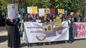 Taşınan pankartlar ve atılan sloganlarla Rojin’i şüpheli cinayeti üzerindeki karanlığın aydınlatılması istendi.