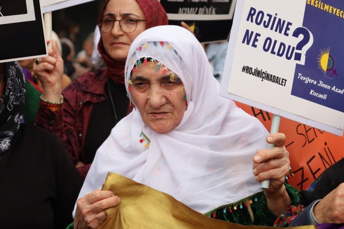 Yürüyüş öncesi Gebze Dilovası Meydanı’nda bir araya gelen kadınlara, yangında yaşamını yitiren kadınların aileleri de katıldı. Kadınlar, öldürülen Kürt kadınlar Sakine Cansız, Evin Goyi, Fidan Doğan, Leyla Şaylemez, Deniz Poyraz ve Nagihan Akarsel’in fotoğraflarının yanı sıra yangında yaşamını yitiren kadın ve çocukların, Narin Güran ile şüpheli bir şekilde yaşamını yitiren Rojin Kabaiş’in fotoğraflarının bulunduğu dövizleri taşıdı.