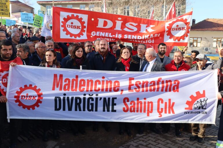 “Divriği bir maden kenti, bu kentte yıllardır bu kentin insanları yerin yedi kat dibine girerek o cevheri çıkartıyor. Böylesi bir süreçte kısa bir süre önce sendikamızın genel sekreterinin de aralarında bulunduğu 18 işçi arkadaşımız işten çıkarıldı. Bu haksız ve hukuksuz işten çıkarma karşısında emeğine ekmeğine sahip çıkmak için bu mücadele ateşini yakan bu direnişi büyüten tüm işçi kardeşlerimi selamlıyorum. Onlar sadece kendi geleceklerine değil tüm işçi sınıfı için mücadele ediyorlar.
