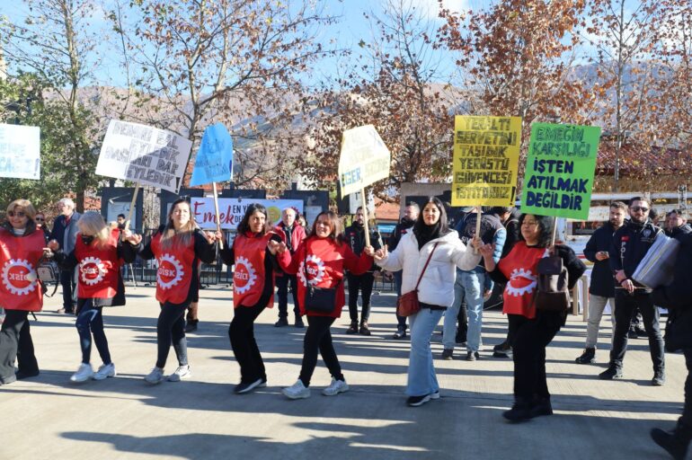 İkinci çağrımız da bütün işçi kardeşlerimizedir. Bugün bu şirketler sizlerin geleceğini belirsiz hale getirmeye çalışıyorlar. Bugün ne üretildiyse bu işçinin alın teri sayesinde olmuştur, Türkiye’nin geleceğine şekil vermiştir. Bu ülkenin tüm değerlerini güzelliklerini üretenler biziz. Hep birlikte bu haksızlıklara hukuksuzluklara mutlaka son vereceğiz.