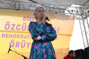 Cezaevindeki tutuklu kadınlara selam gönderen Sebahat Tuncel, “Bir sonraki 8 Martı özgürlük meydanlarında birlikte kutlamak için çok çalışıyoruz. İnanıyoruz ki bir sonraki 8 Mart’ta yoldaşlarımız aramızda olacak, birlikte kutlayacak” diye konuştu.