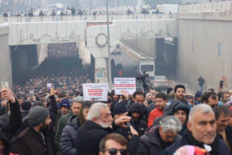 Koşuyolu Parkı İnsan Hakları Anıtı önünde bir araya gelen platform bileşeni çok sayıda siyasi parti ile sivil toplum örgütü temsilcilerinin katılımıyla binlerce kişi yürüyüş düzenledi. Ofis Semti’nde bulunan AZC Plaza’ya yapılan yürüyüşe Demokratik Bölgeler Partisi (DBP) Eş Genel Başkanları Çiğdem Kılıçgün Uçar ile Keskin Bayındır da katıldı.