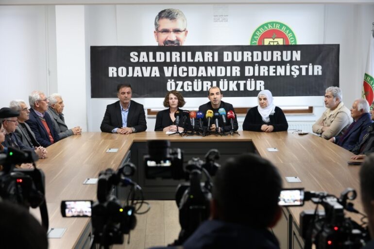 Demokratik Kurumlar Platformu, Demokratik Birlik İnisiyatifi ve Kürt partileri, Kuzey ve Doğu Suriye’ye yönelik saldırılara ilişkin Diyarbakır Barosu’nda açıklama yaptı.