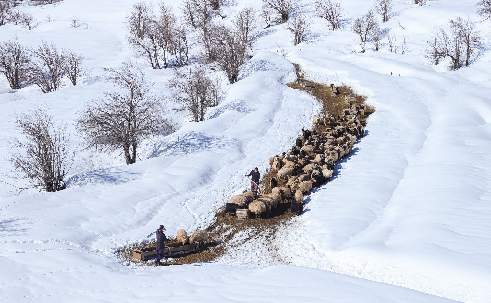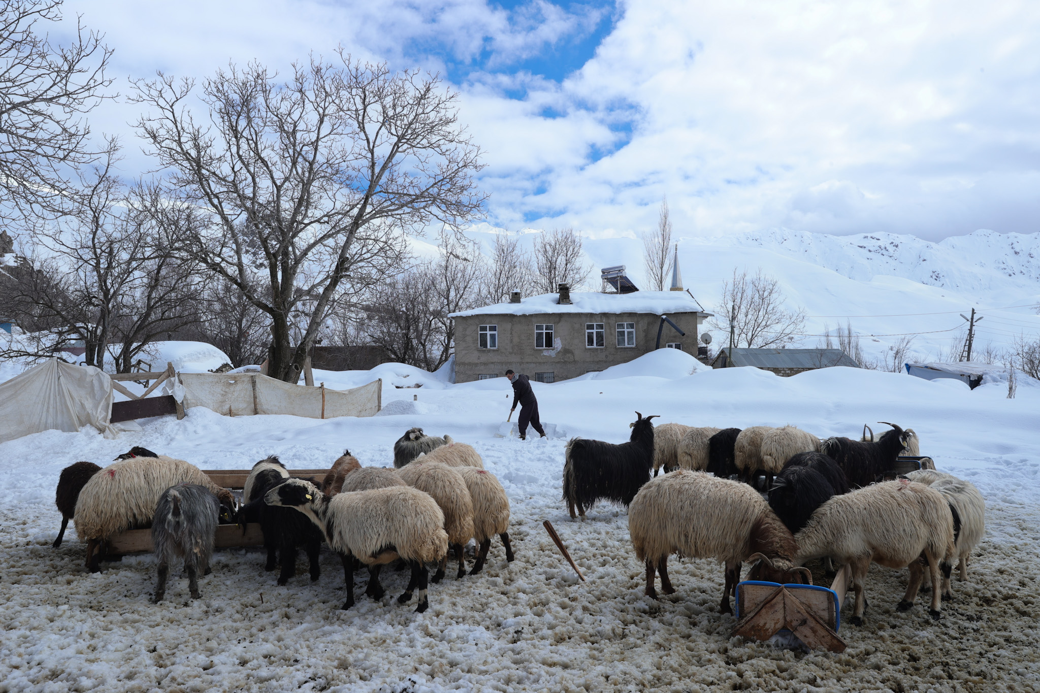 Yükselti ve coğrafi yapının etkisiyle hava sıcaklığının bazı bölgelerde farklılık gösterdiği Hakkari’nin merkeze bağlı dağ köylerinde metrelerce kar bulunurken, doğanın canlandığı Derecik ilçesinde hayvanlar meralarda otlatılıyor
