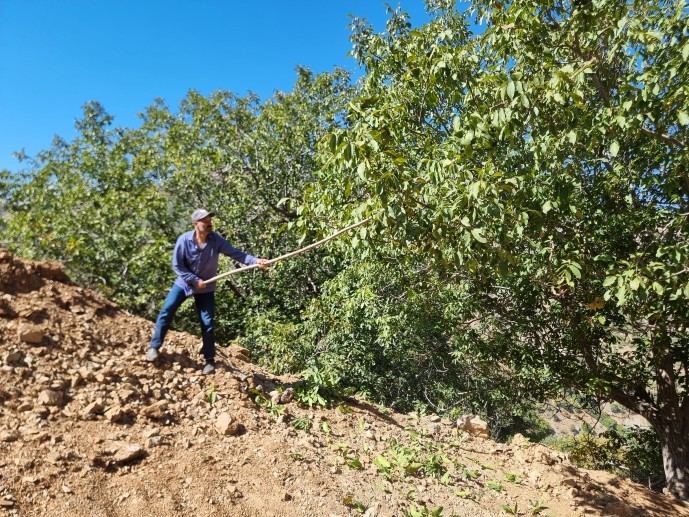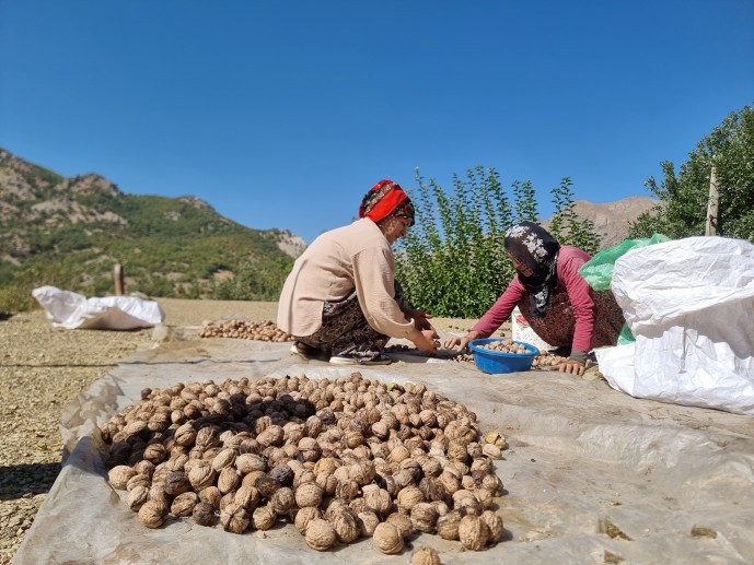 Ceviz yetiştiriciliğinde iklim ve hava sıcakları derecesine göre hasat dönemleri değişirken, Diyarbakır’ın Kulp ilçesinin yüksek kesimlerindeki kırsal mahallelerinde ceviz hasadı başladı.