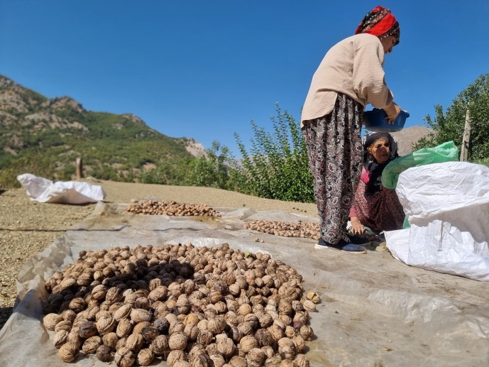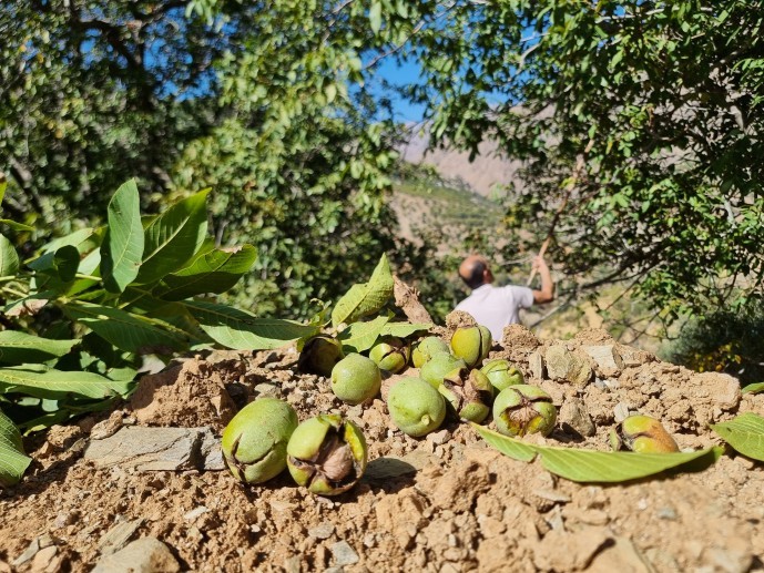 Diyarbakır’ın Kulp ilçesinin yüksek kesimlerindeki mahallelerde ceviz hasadı başladı.