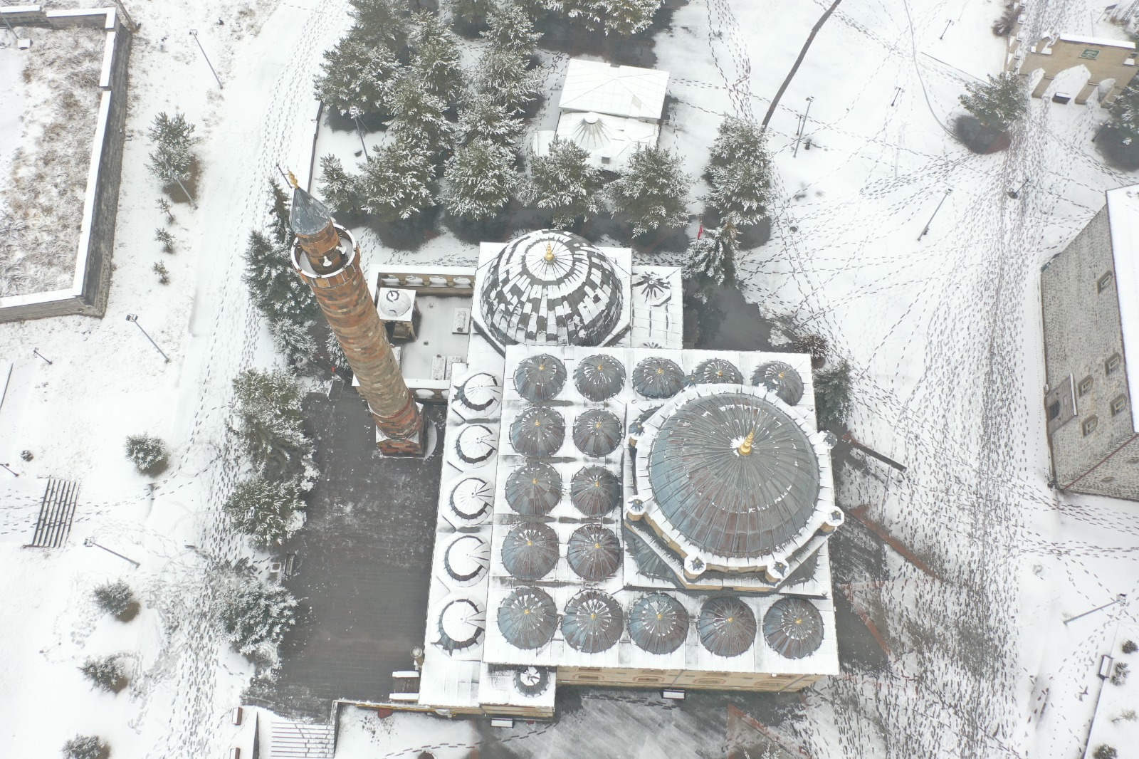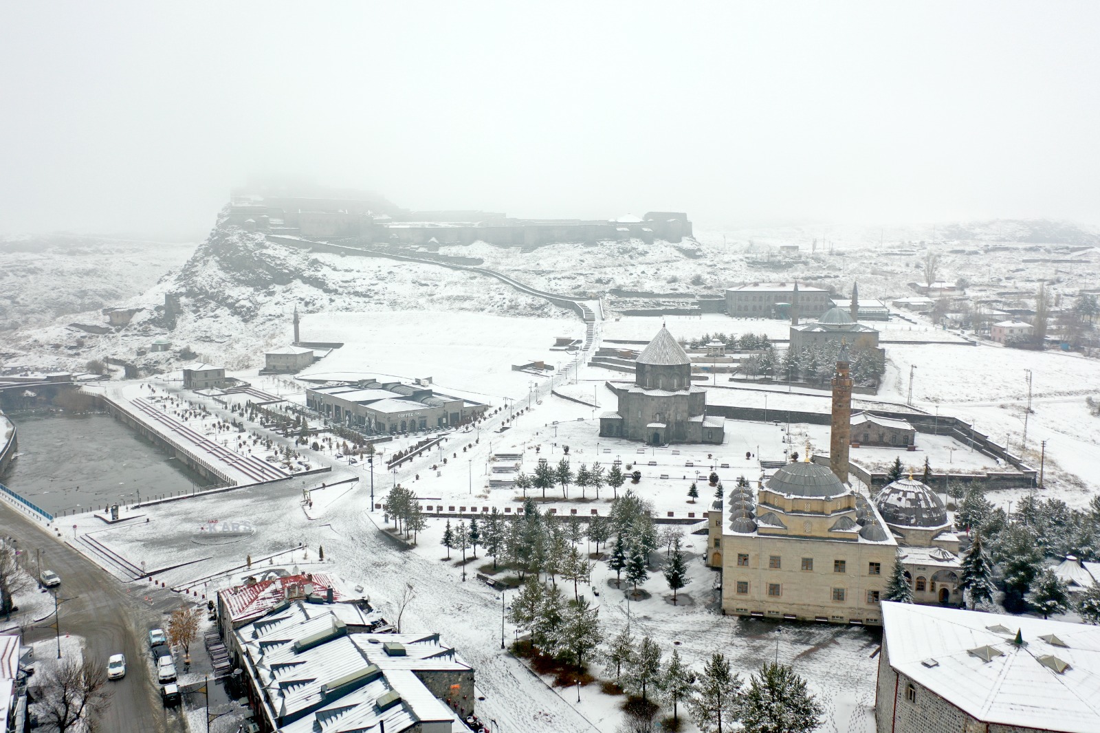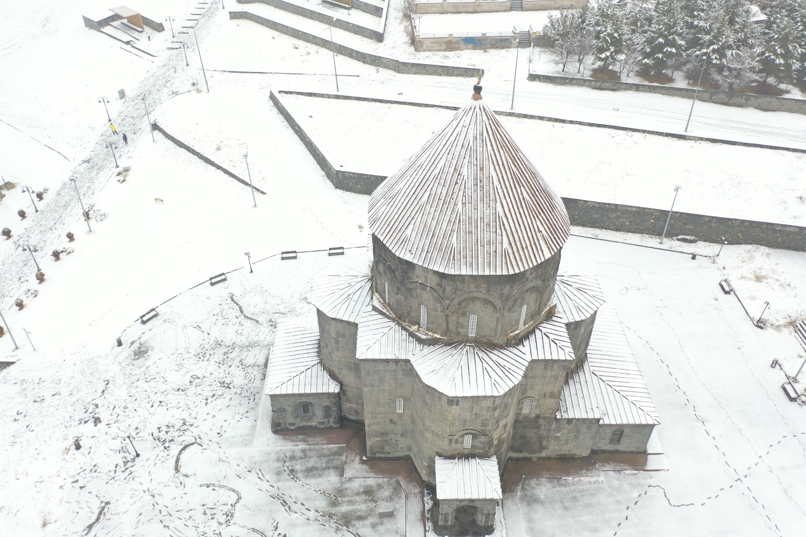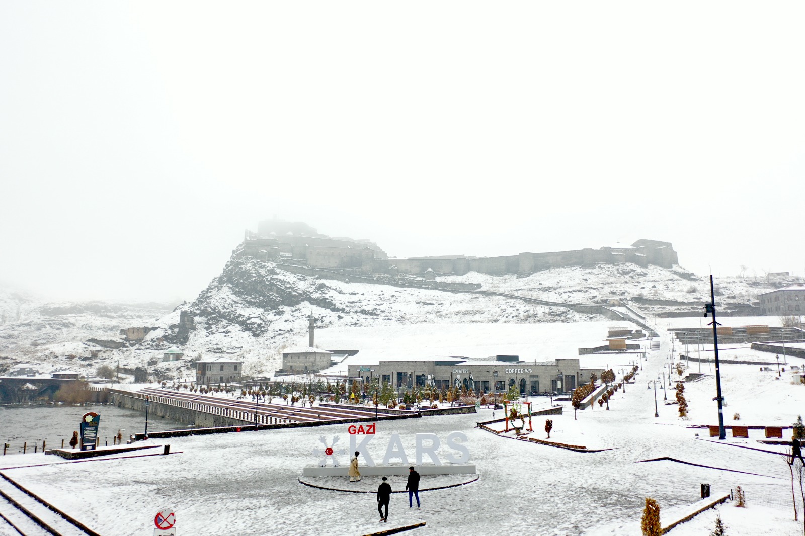 Kars’ta karla kaplanan tarihi yapılar, güzel manzaralar oluşturdu.