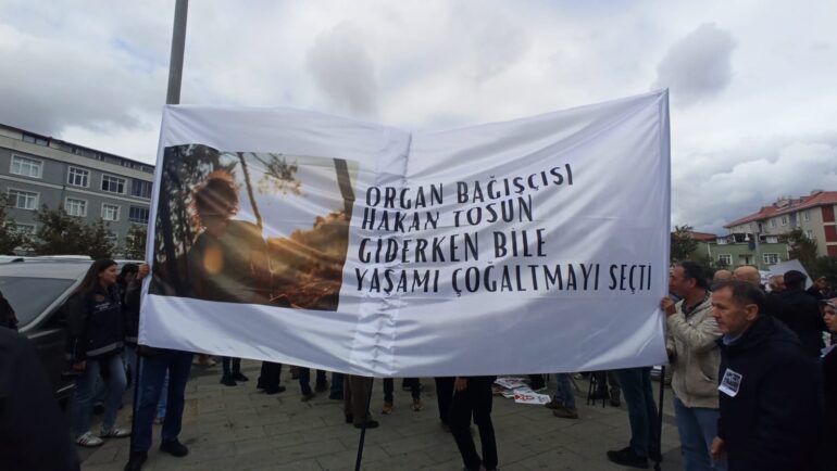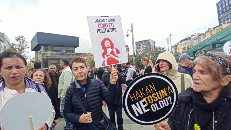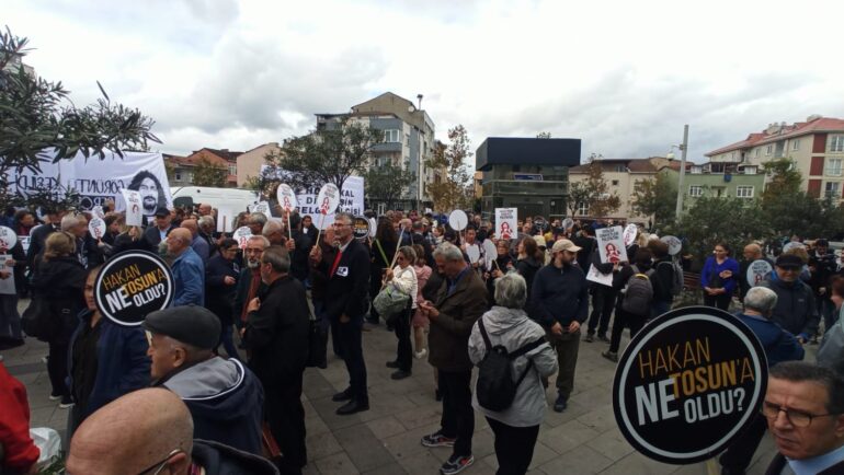 Gazeteci Hakan Tosun’un cenaze töreni için ailesi, dostları ve meslektaşları, “Hakan Tosun’a ne oldu?” pankartı açtı