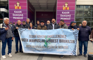 Sakarya Meydanı’nda bir araya gelen ve hasta mahpusların durumuna dikkat çeken inisiyatif üyeleri, Erzincan Yüksek Güvenlikli Kapalı Cezaevi’nde tutulan Seyad Erişmiş’in durumuna dikkat çekti.