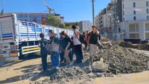 6 Şubat depremlerinde büyük yara alan Hatay’da sorunlar hala devam ediyor. Altyapı, üst yapı, eğitime kadar birçok sorun çözüm bekliyor. Defne ilçesi Çekmece Mahallesi’nde bulunan Gazi Ortaokulu ve Cengiz Topel İlkokulu birleşiminden oluşan okul, şantiye alanının tam ortasında bulunuyor.