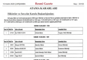 Hakimler ve Savcılar Kurulunun (HSK), adli ve idari yargıdaki atama kararnamesi Resmi Gazete’de yayımlandı.