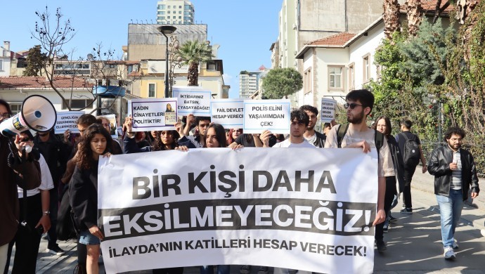 “Bir kişi daha eksilmeyeceğiz. İlayda’nın katilleri hesap verecek” yazılı pankartının taşındı.