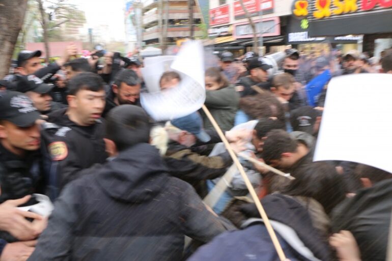 Eylemi takip eden gazetecilerde polisin müdahalesine maruz kalırken, çok sayıda kişi gözaltına alındı.