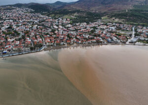 Yağışın ardından Yenifoça sahilinde su taşkını nedeniyle denizin renginin değiştiği gözlendi.