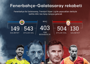 Bu arada, iki takımda da forma giyen Tanju Çolak’ın 14’ü Galatasaray, 8’i Fenerbahçe formasıyla olmak üzere rekabette toplam 22 golü var.