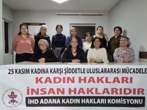 İHD Adana Şubesi Kadın Hakları Komisyonu, 25 Kasım kapsamında 2025 Ocak–Ekim dönemine ait kadın cinayetleri raporunu şube binalarında yaptıkları toplantıyla açıkladı. Açıklamada basın metnini okuyan İHD Adana Şubesi Kadın Hakları Komisyonu Sözcüsü Baran Öner, cinayetlerin özellikle kadınların ayrılmak, çalışmak ya da hayatlarına dair karar almak istedikleri dönemlerde arttığını belirtti.