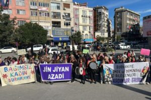 Güreş Caddesi’nde bulunan MADO önünde sonlanan yürüyüşün ardından açıklama yapıldı. Açıklamayı yapan TJA’lı Muazzez Bulga, 25 Kasım Kadına Yönelik Şiddete Karşı Uluslararası Mücadele Günü’nde bütün kadınların sesi olmaya devam edeceklerini söyledi. Muazzez Bulga, “Mirabel’lerden bugüne uzanan mirasla, şiddetsiz ve özgür bir yaşamı demokratik toplumla birlikte örüyoruz. Bu 25 Kasım’ı da bir yandan katledilen kadınların öfkesi bir yandan coğrafyamızda hakim olan barış inşasının umudu ile karşılıyoruz” dedi.