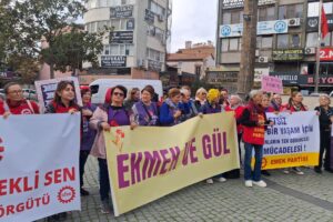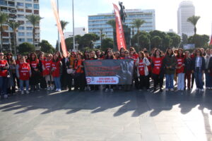 Genel-İş İzmir 6 No’lu Şube üyesi kadın işçiler, 25 Kasım dolayısıyla Konak SGK önünde toplanarak Cumhuriyet Meydanına yürüdü. “Kadın cinayetleri politiktir” pankartı açılan yürüyüşte “Kadın yaşam özgürlük”, “Jin Jiyan Azadi”, “Yaşasın kadın dayanışması” sloganları atıldı. Çok sayıda kadının katıldığı yürüyüş sonrası konuşan Genel-İş İzmir 6 No’lu Şube Kadın Komisyonu Başkanı Burcu Karahan, “Kadına yönelik şiddet kader değildir, önlenebilir bir toplumsal sorundur. Sessiz kalmak, bu şiddetin devamına zemin hazırlamaktır. Bugün ve her gün, kadınların yaşam haklarını, eşitliği, özgürlüğü ve adaleti savunmaya devam edeceğiz. Tüm kurumları, karar alıcıları ve toplumu şiddetsiz bir gelecek için sorumluluk almaya çağırıyoruz” dedi.