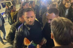 Kocaeli’ndeki 25 Kasım yürüyüşünde LGBTİ bayrağına polis müdahale etti; yaşanan arbedede bir kadın bayılırken bir kişi gözaltına alındı.
