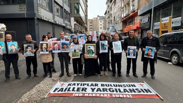 İnsan Hakları Derneği (İHD) ve kayıpları yakınları, Hakkari’de “Kayıplar bulunsun, failler yargılansın” eylemini Sanat Sokağı’nda gerçekleştirdi.