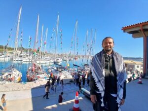 Yaklaşık 10 gündür buradayım. Ben buraya geldiğimde İspanya filosu zaten yola çıkmıştı. Biz de bu süreçte hem katılımcıları karşıladık, hem eğitim süreçlerini tamamladık hem de gemilerin hazırlıklarını tamamladık.
