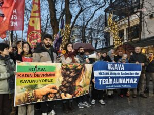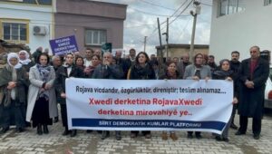 Aydın’daki açıklamada konuşan DEM Parti İl Eşbaşkanı Şükran Sarı, “Rojava Kürt’tür, Türk’tür, emekçidir. Teslim alınamadı, alınamayacaktır” diyerek Kobani’deki insani krizin son bulması için sınır kapılarının derhal açılmasını talep etti.