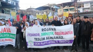 Aydın’ın Söke ilçesinde ve Siirt’in Gökçebağ beldesinde düzenlenen yürüyüşlerde, Kuzeydoğu Suriye’nin sadece bir toprak parçası değil, halkların eşitlik içinde yaşayacağı bir model olduğu belirtildi.