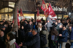 Değirmenci, “Bir pankart açtılar ‘kölelik düzeni sona ersin dediler’, bu gençleri tutukladılar. Açtıkları dava ‘kamu malına zarar’ iddiasıyla açıldı. Gençlerin açtığı pankart noel süsüne değmiş. Gençleri özel güvenlik dışarı çıkardı. Kamu görevlisine mukavemet dediler. Özel güvenlik kamu çalışanı mı ki kamu görevlisine mukavemet olsun. Tarikatların, cemaatlerin Milli Eğitim Bakanı Yusuf Tekin, o koltuktan kalkana kadar, iş cinayetlerinin yaşandığı MESEM’ler kapanana kadar, tek bir arkadaşımız cezaevinde kalmayana kadar mücadelemiz sürecek. Bu düzeni yıkıp değiştireceğiz” diye konuştu.