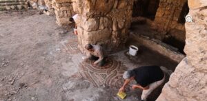 Mardin’in Midyat ilçesinde temizlik çalışması yapılan tarihi değirmenin tabanında yaklaşık 1500 yıllık mozaik tespit edildi.